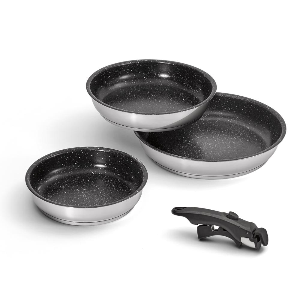 3 Poêles inox 20/24/28cm - Amovible antiadhésif induction