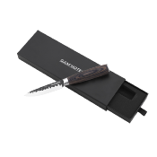 Les couteaux ont été développés pour répondre aux exigences spécifiques de la préparation culinaire. Les lames des couteaux sont en acier  5Cr15MoV avec une finition martelée et satinée, dureté obtenue entre 55 et 57 HRC, de grande qualité avec un pourcentage élevé de carbone.  Ces aciers confèrent aux produits leurs qualités de résistance, dureté, inoxydabilité, anti-corrosion et tranchant,apporte une grande efficacité au tranchant et donc une plus grande longévité de coupe. Le manche en lamelles de bois Pakka sont compressées à chaud avec de la résine, ce qui permet d'être très résistant et hygiénique.