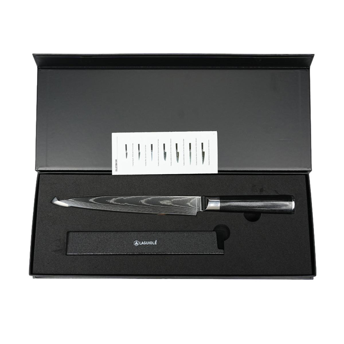 Couteau à trancher noir damas 34cm avec étui - "Core"