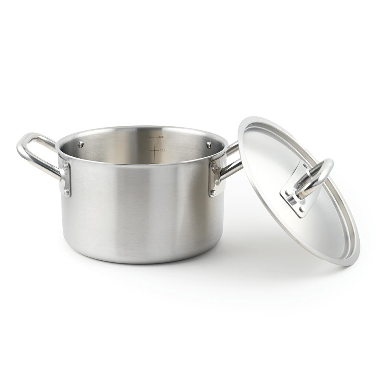 Marmite 24x15cm en triplex, intérieur acier inoxydable 304, une cuisson rapide et contrôlée. Le corps triplex assure une répartition uniforme de la chaleur du fond jusqu'à la paroi, la maintenant ainsi longtemps.
