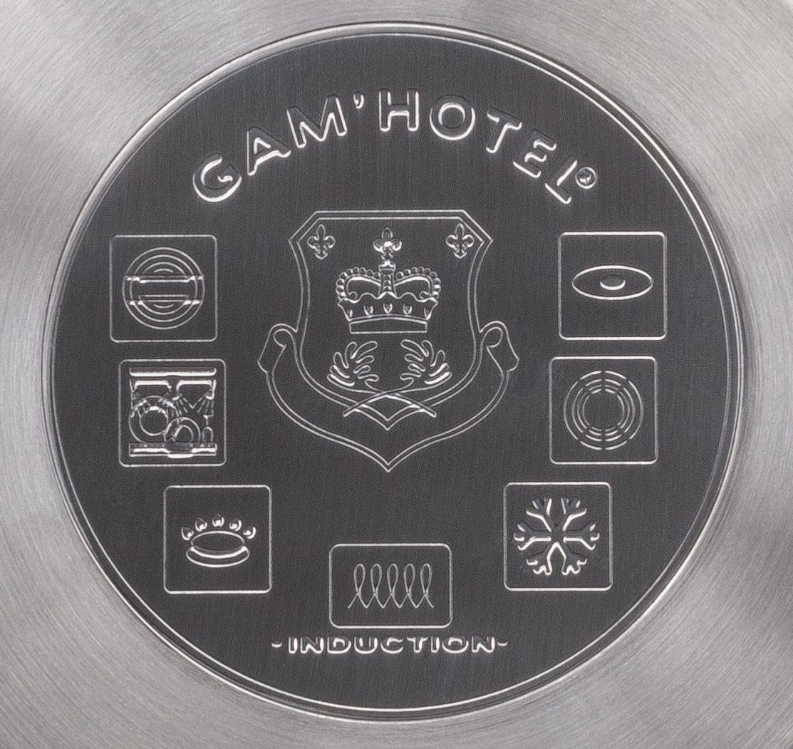 Corps en acier inoxydable 18/8 ultra résistant à l'abrasion. Permet de cuisiner avec peu ou sans matière grasse. Compatible sur toutes les plaques, même induction.