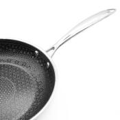 Poêle 24cm Black Cube Innov Triplex en inox 18/10. Le corps Triplex assure une répartition homogène de la chaleur du fond jusqu'à la paroi. L'intérieur en traitement & revêtement céramique anti-adhésif breveté, garanti sans PTFE ni PFOA, PFAS. Black Cube Innov, doté de formes géométriques réalisées à partir de micro-points d'acier inoxydable, réduit le frottement de vos ustensiles avec le revêtement antiadhésif en multi-couches en haute résistance.
