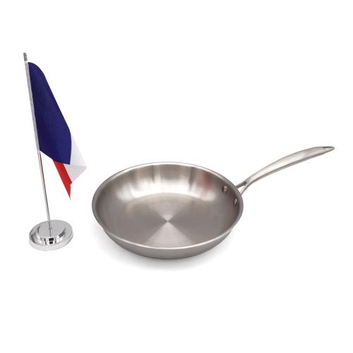 Poêle 24x5,5cm en triplex, intérieur acier inoxydable 304, une cuisson rapide et contrôlée. Le corps triplex assure une répartition uniforme de la chaleur du fond jusqu'à la paroi, la maintenant ainsi longtemps.