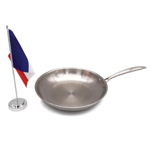 Poêle 32x6,5cm en triplex, intérieur acier inoxydable 304, une cuisson rapide et contrôlée. Le corps triplex assure une répartition uniforme de la chaleur du fond jusqu'à la paroi, la maintenant ainsi longtemps.