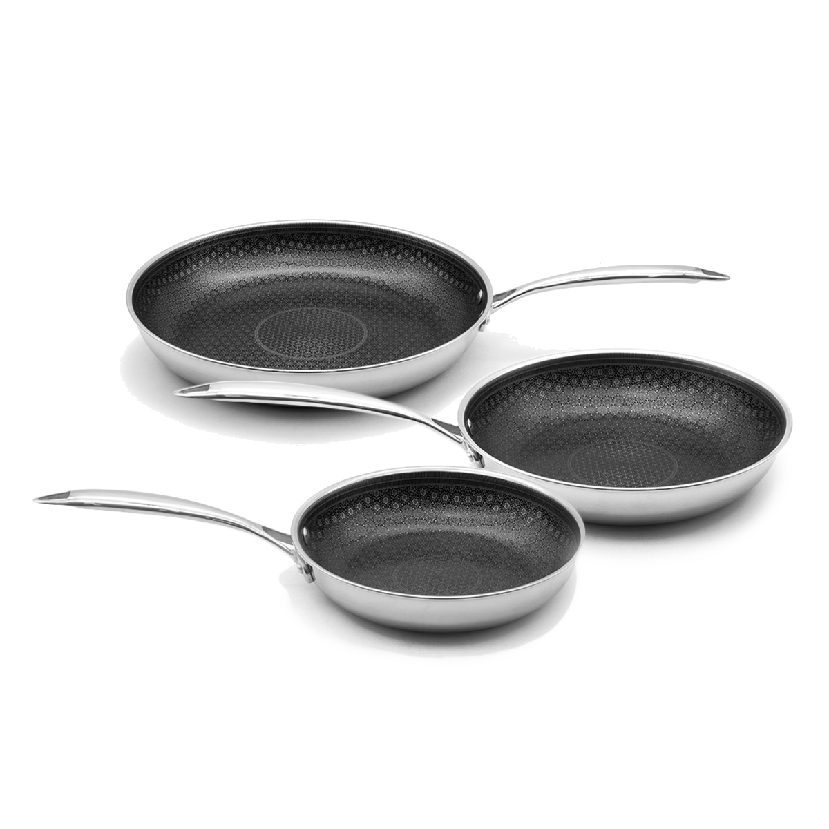 Black Evolution Triplex en inox. Le corps Triplex assure une répartition homogène de la chaleur du fond jusqu'à la paroi.